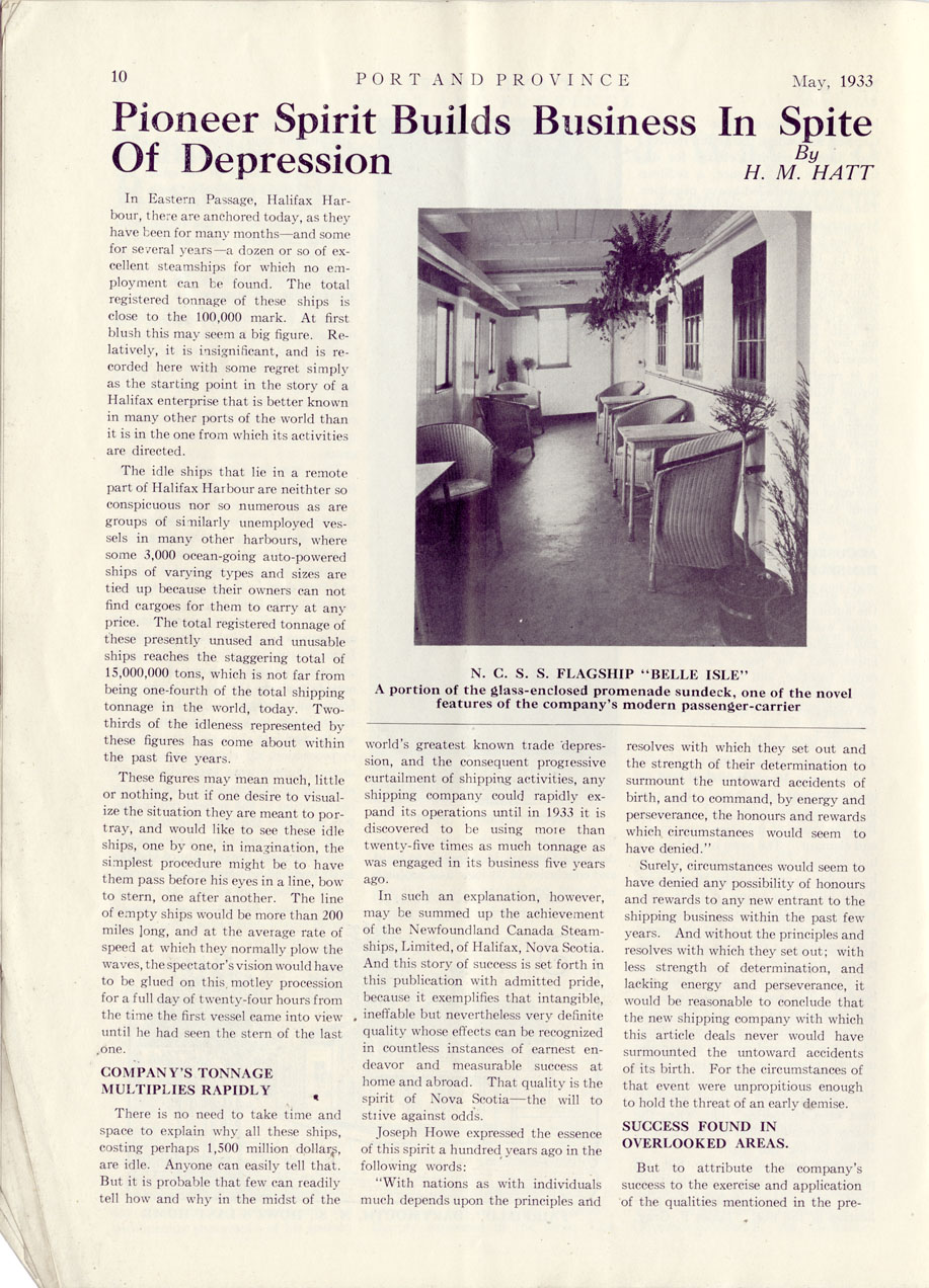 "Port and Province" May 1933 - see page 19 - from "The Legionary" official magazine of the Canadian Legion, British Empire Service League.