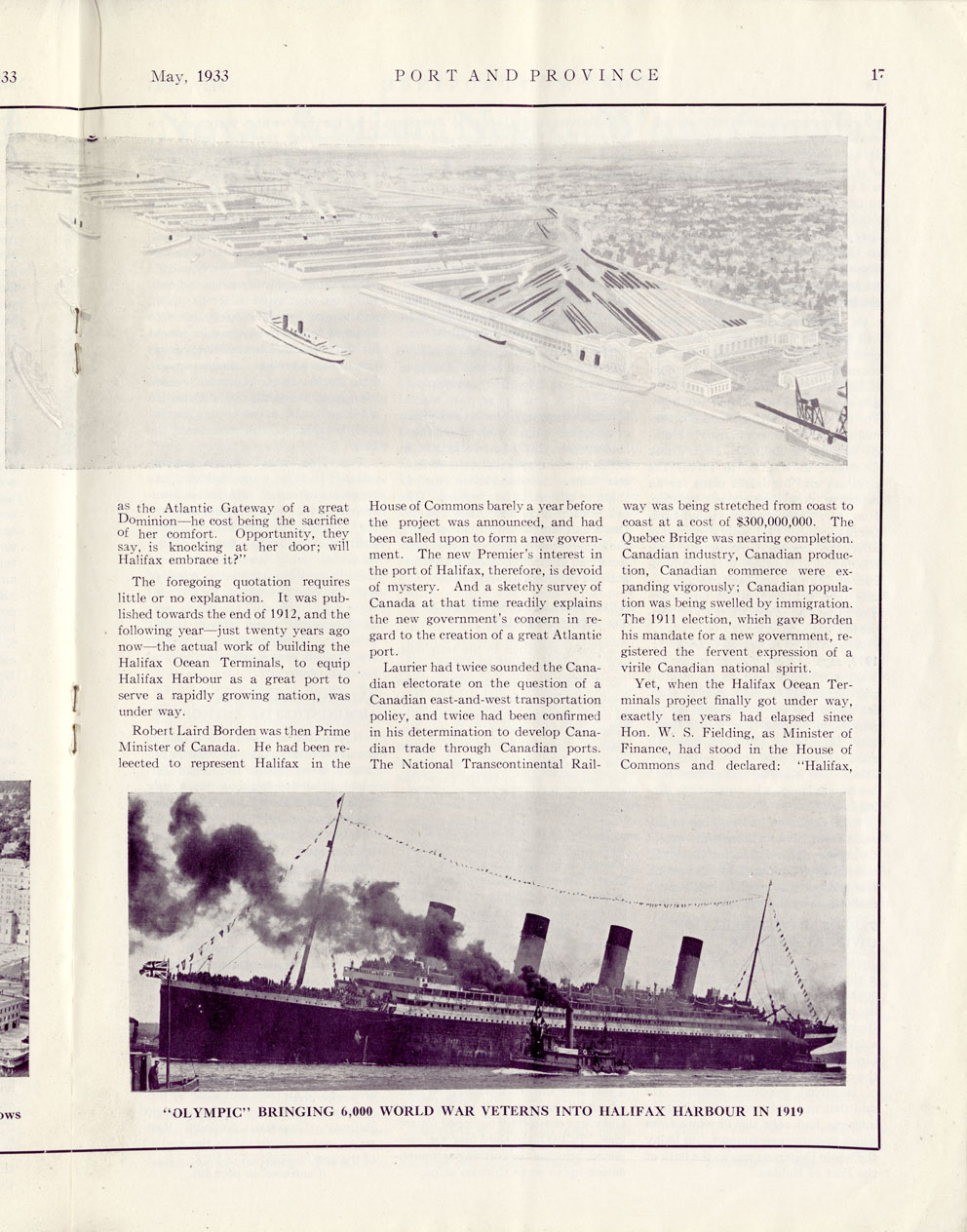 "Port and Province" May 1933 - see page 19 - from "The Legionary" official magazine of the Canadian Legion, British Empire Service League.