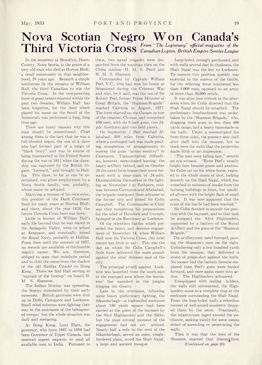 "Nova Scotian Negro Won Canada's Third Victoria Cross"