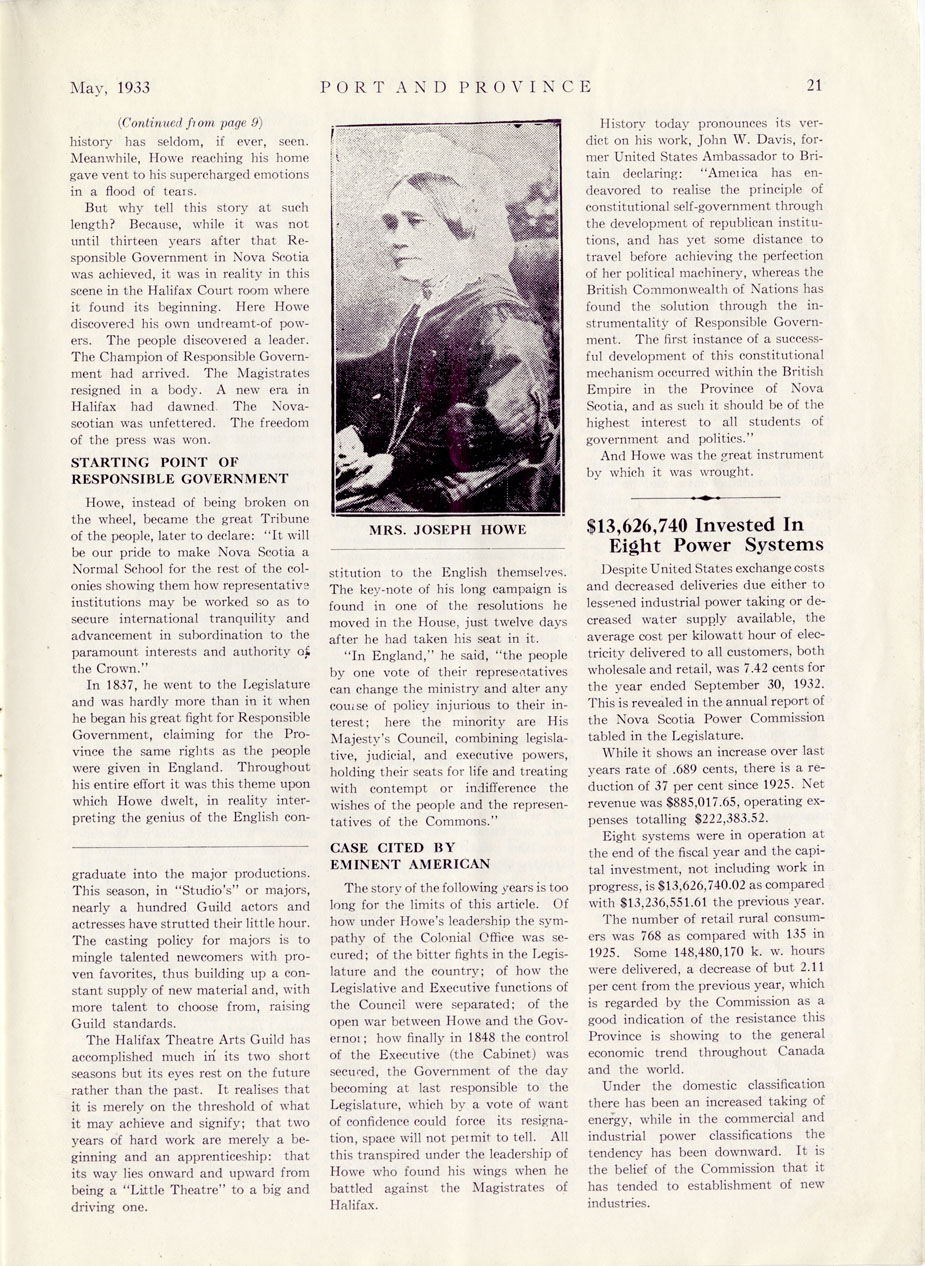 "Port and Province" May 1933 - see page 19 - from "The Legionary" official magazine of the Canadian Legion, British Empire Service League.