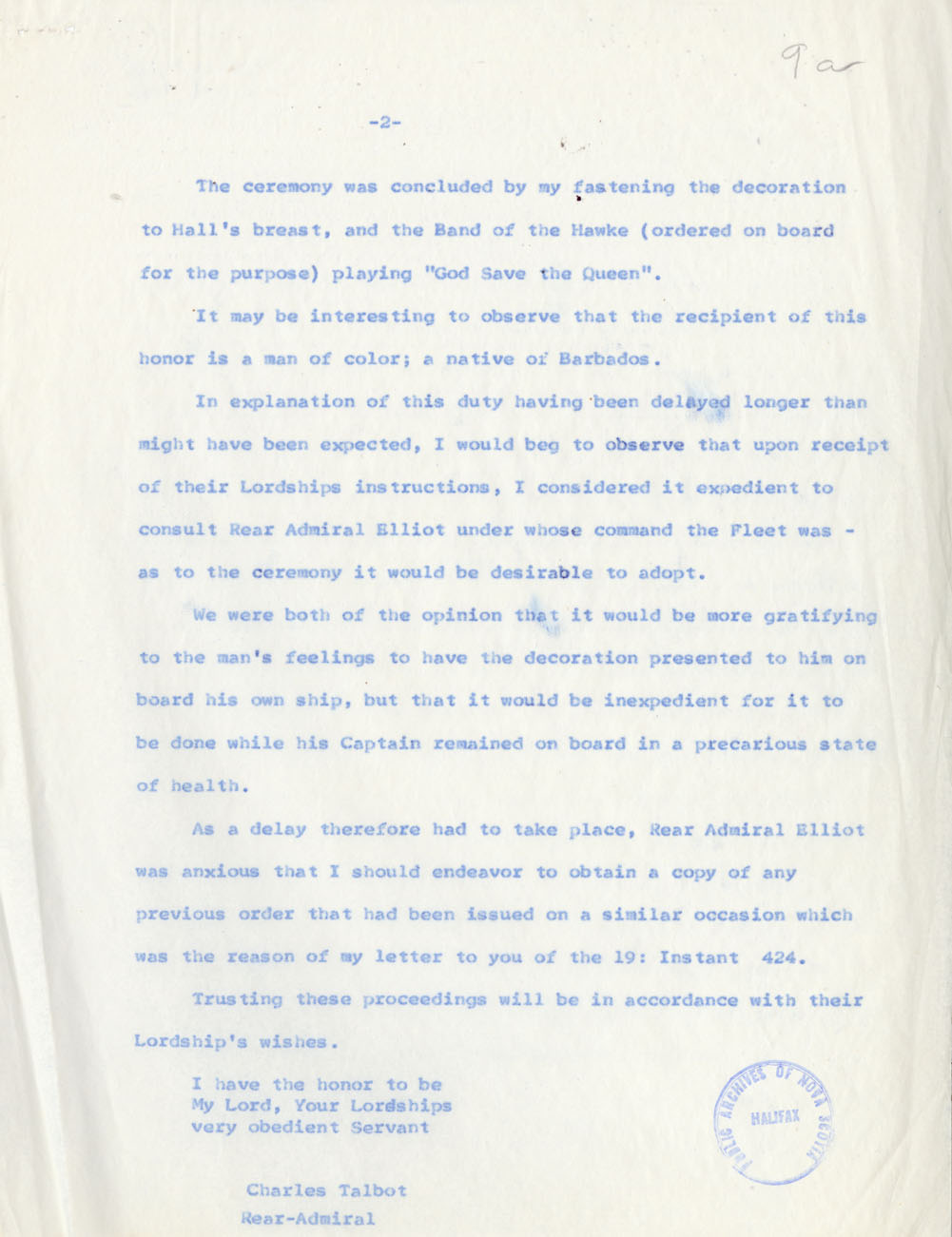 Reference William Hall, VC Nova Scotia Archives MG 1 volume 1499 number 59