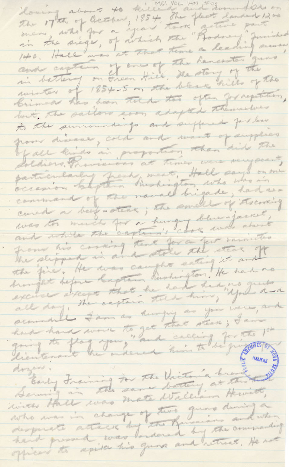 Reference William Hall, VC Nova Scotia Archives MG 1 volume 1499 number 75
