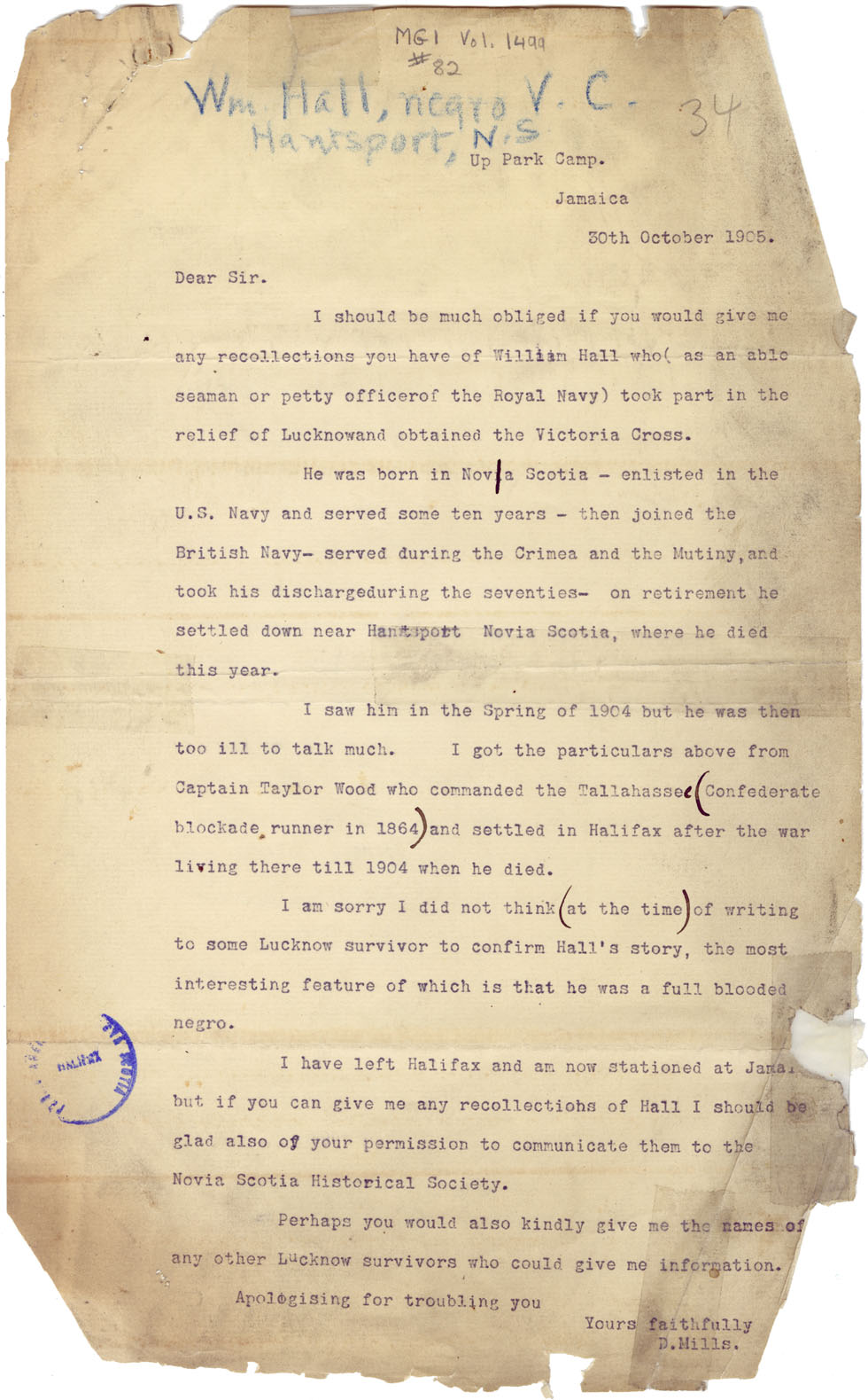 Reference William Hall, VC Nova Scotia Archives MG 1 volume 1499 number 82