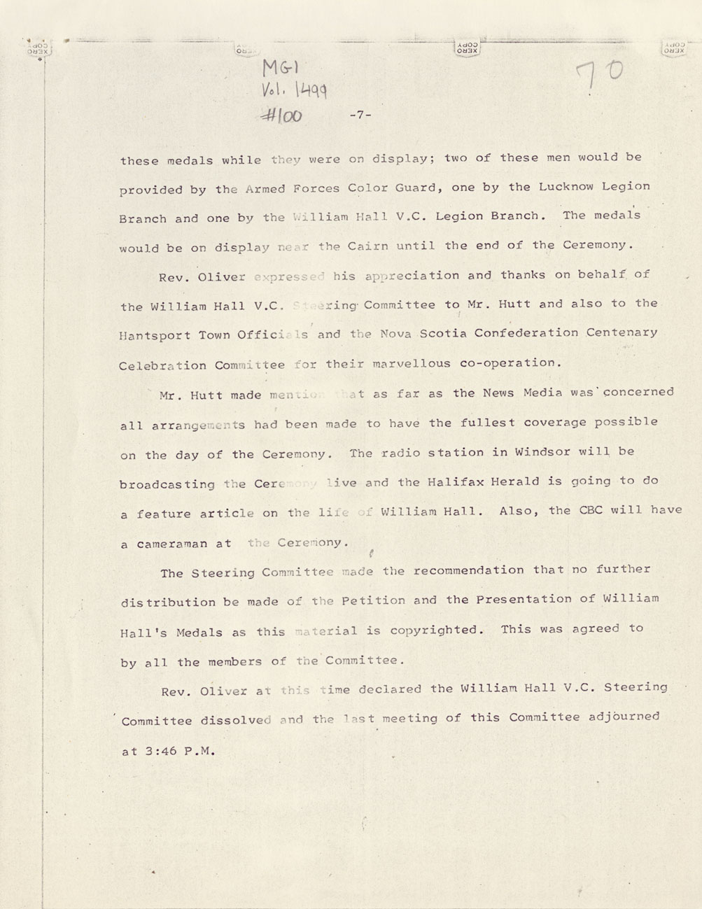Reference William Hall, VC Nova Scotia Archives MG 1 volume 1499 number 100