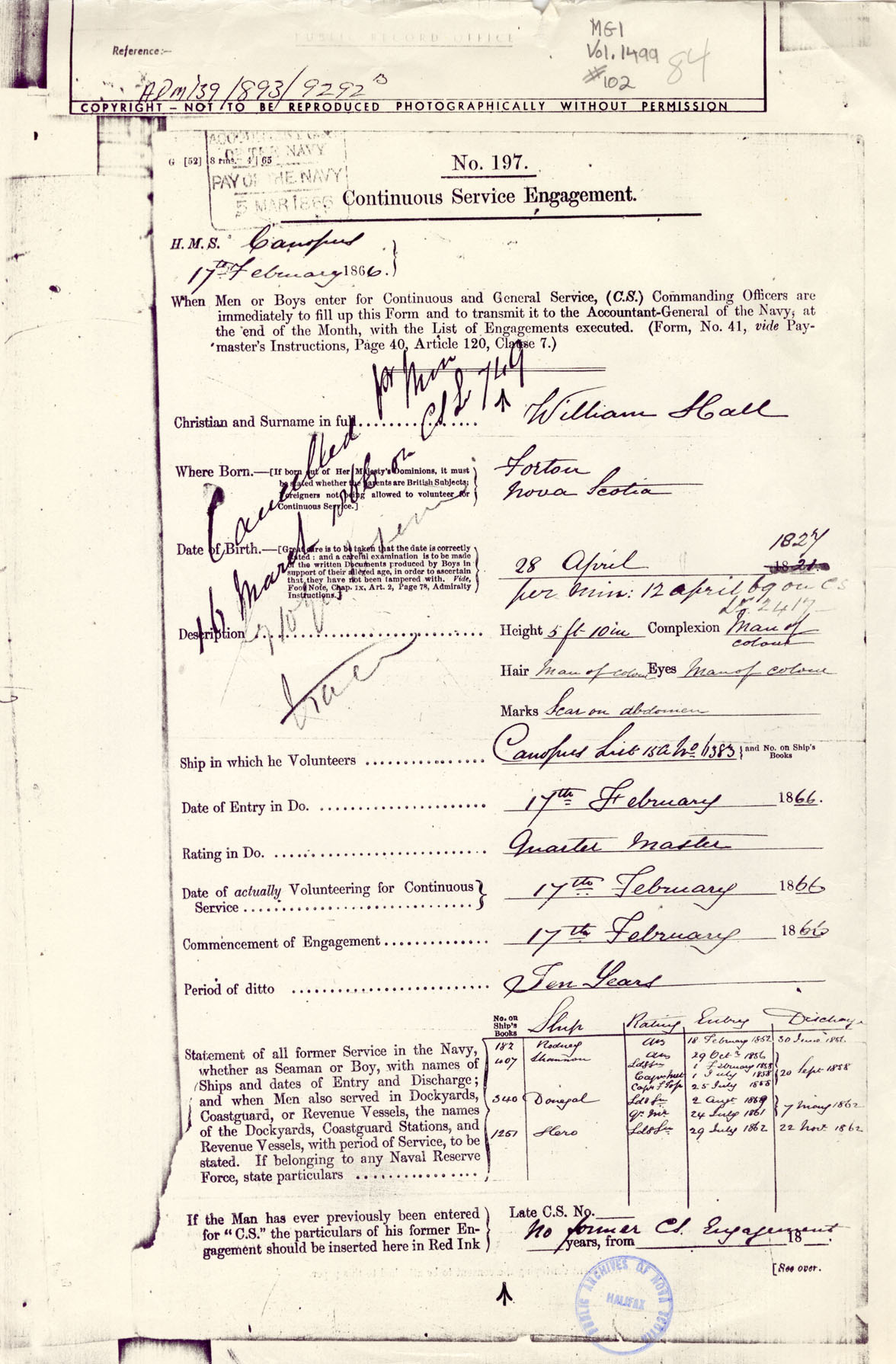 William Hall's Royal Navy Records from the Public Records Office