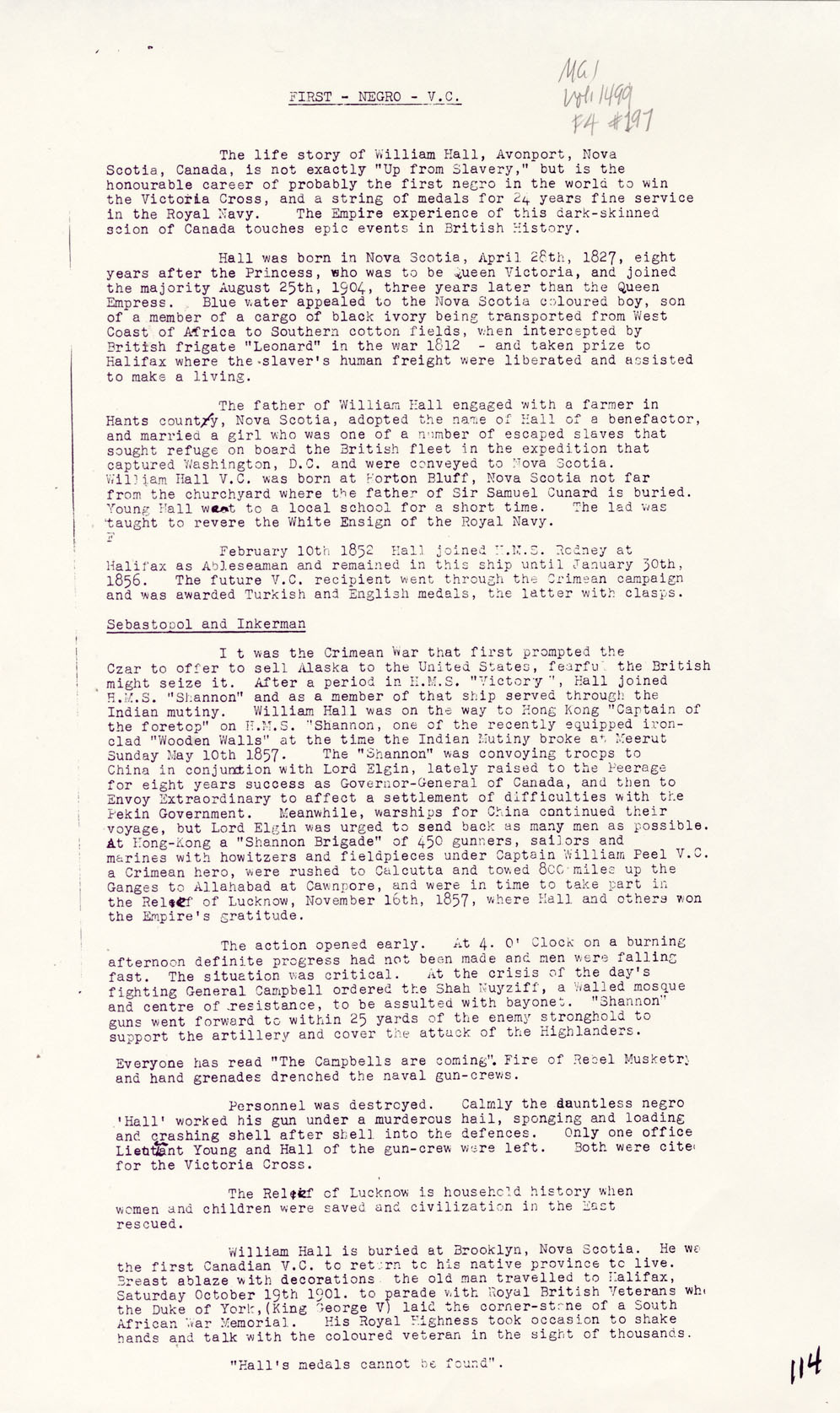 Reference William Hall, VC Nova Scotia Archives MG 1 volume 1499 number 197