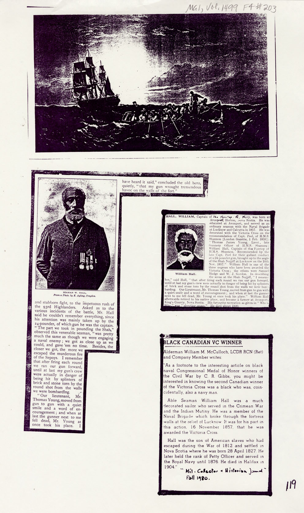 Reference William Hall, VC Nova Scotia Archives MG 1 volume 1499 number 203