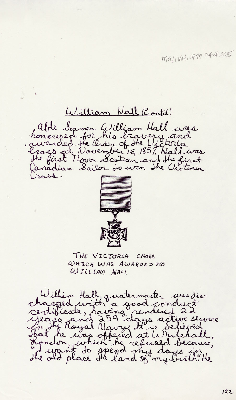 Reference William Hall, VC Nova Scotia Archives MG 1 volume 1499 number 205-206