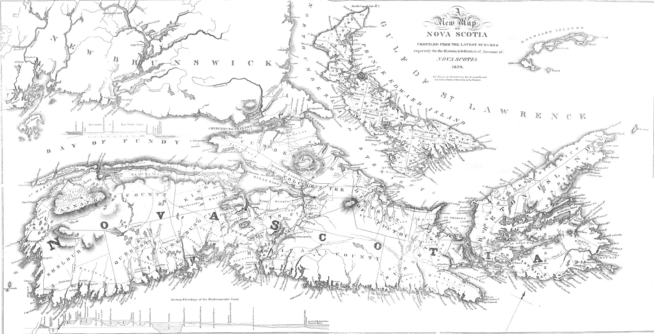 Noted author and humourist Thomas Chandler Haliburton was the author of An Historical and Statistical Account of Nova Scotia (Halifax, Joseph Howe, 1829). This map appeared as one of the illustrations.