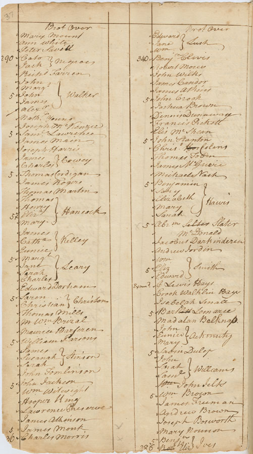 Cato (no. 290) and Jack (no. 291) were among the seventeen free black people living in Halifax to whom the government distributed food in the late spring of 1750. The victualled population was 2367 persons. Slave rations were the responsibility of the slaveholder, not the government.