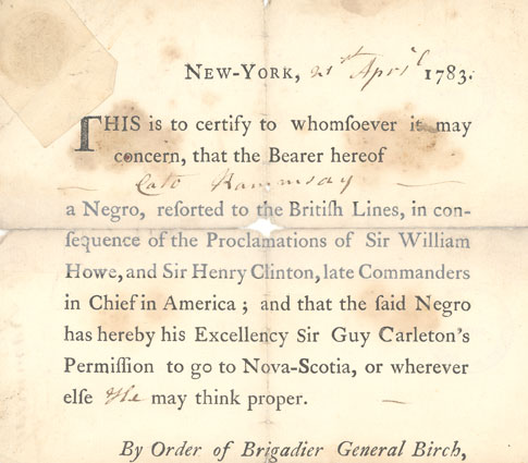 This document demonstrates that black refugees behind British lines needed passports to escape from America after the War of Independence. Indeed, some without passports were returned to their place of origin, which meant a return to slavery. Also, it makes clear that Ramsay initiated his freedom by escaping to the British lines, which certainly put his life at risk.