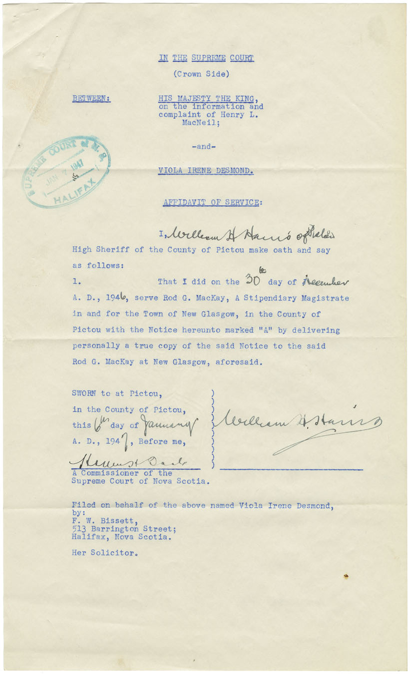 Affidavit of Service to Stipendiary Magistrate MacKay (dated 6 January 1947)