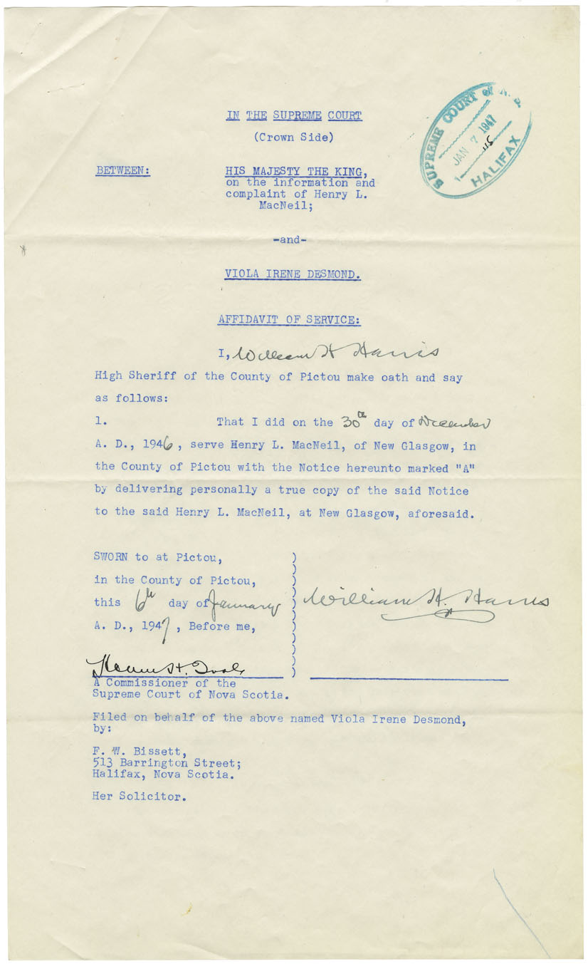 Affidavit of Service to Henry MacNeil (dated 6 January 1947)