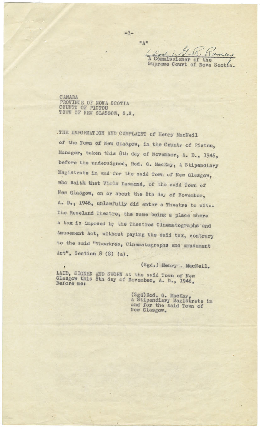 Affidavit of Service to Stipendiary Magistrate MacKay and Henry MacNeil