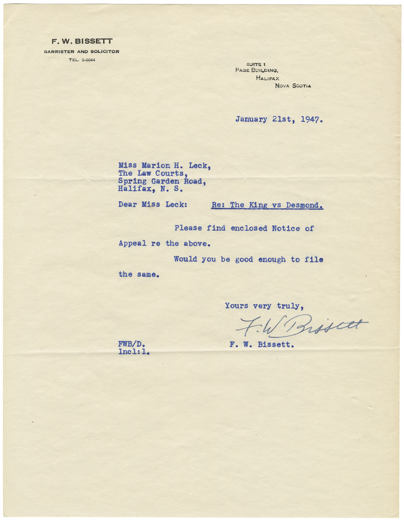 Letter, F.W. Bissett to Deputy Prothonotary, enclosing Notice of appeal