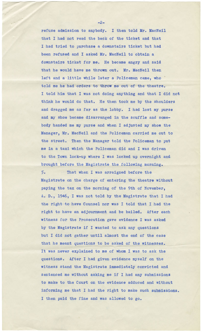 Affidavit of Viola Desmond in support of her appeal