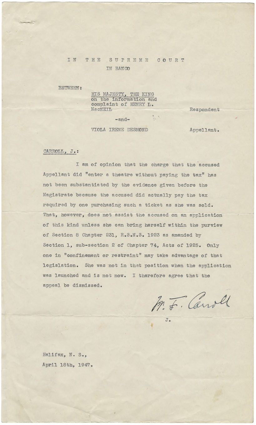 Opinion of Justice Carroll (dated 18 April 1947)