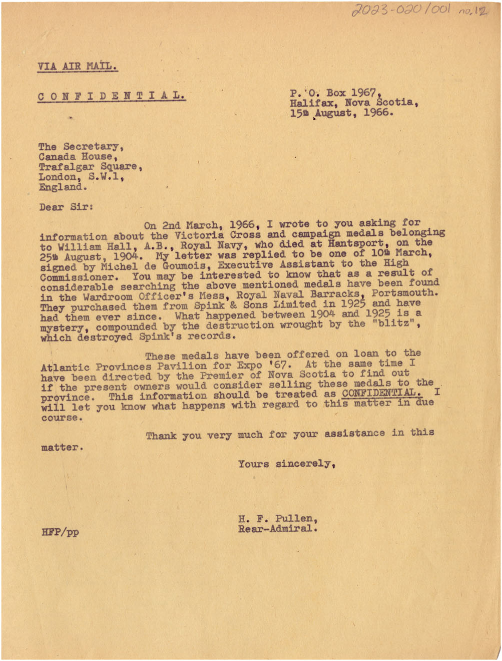 Reference Rear Admiral Hugh F. Pullen Nova Scotia Archives 2023-020/001-12