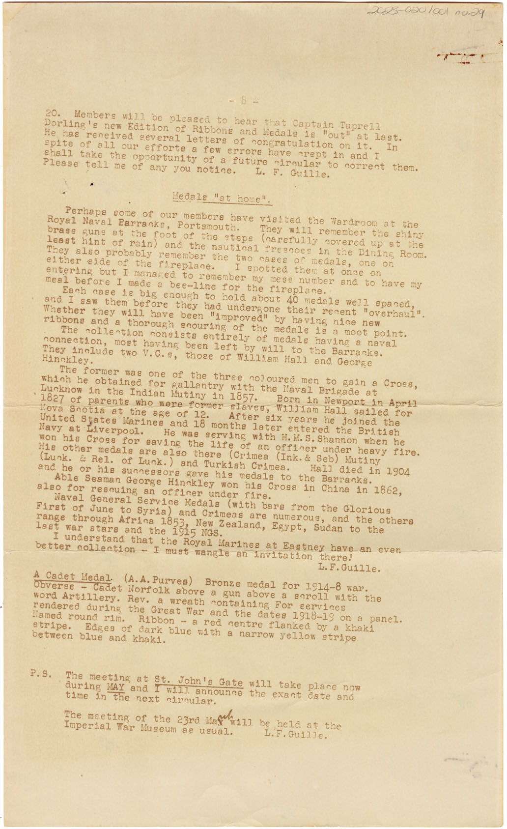 Information about the collection of naval medals kept at the Wardroom, Royal Naval Barracks, Portsmouth.