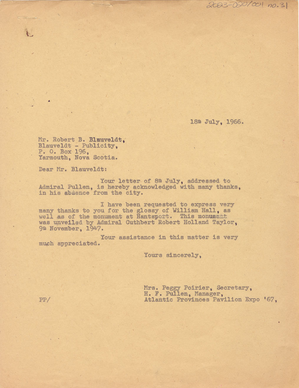 Reference Rear Admiral Hugh F. Pullen Nova Scotia Archives 2023-020/001-31
