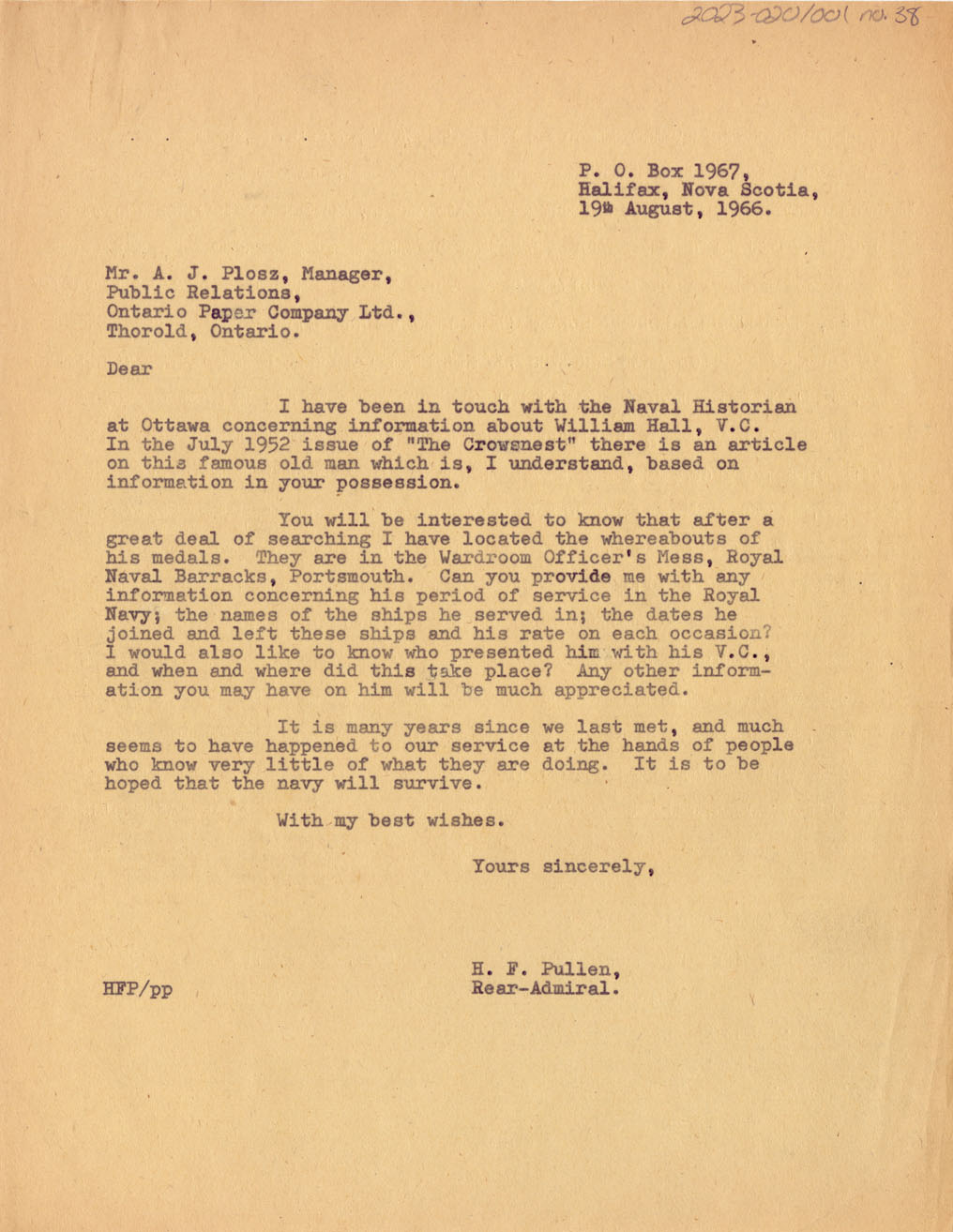 Reference Rear Admiral Hugh F. Pullen Nova Scotia Archives 2023-020/001-38