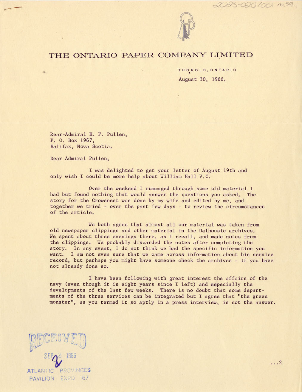 Reference Rear Admiral Hugh F. Pullen Nova Scotia Archives 2023-020/001-39