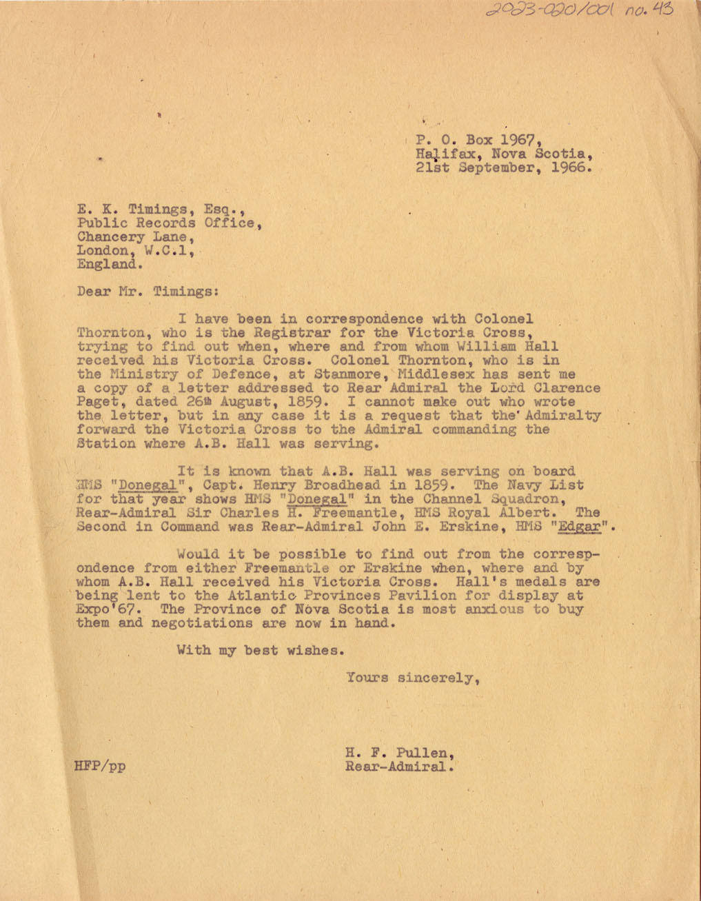 Reference Rear Admiral Hugh F. Pullen Nova Scotia Archives 2023-020/001-43