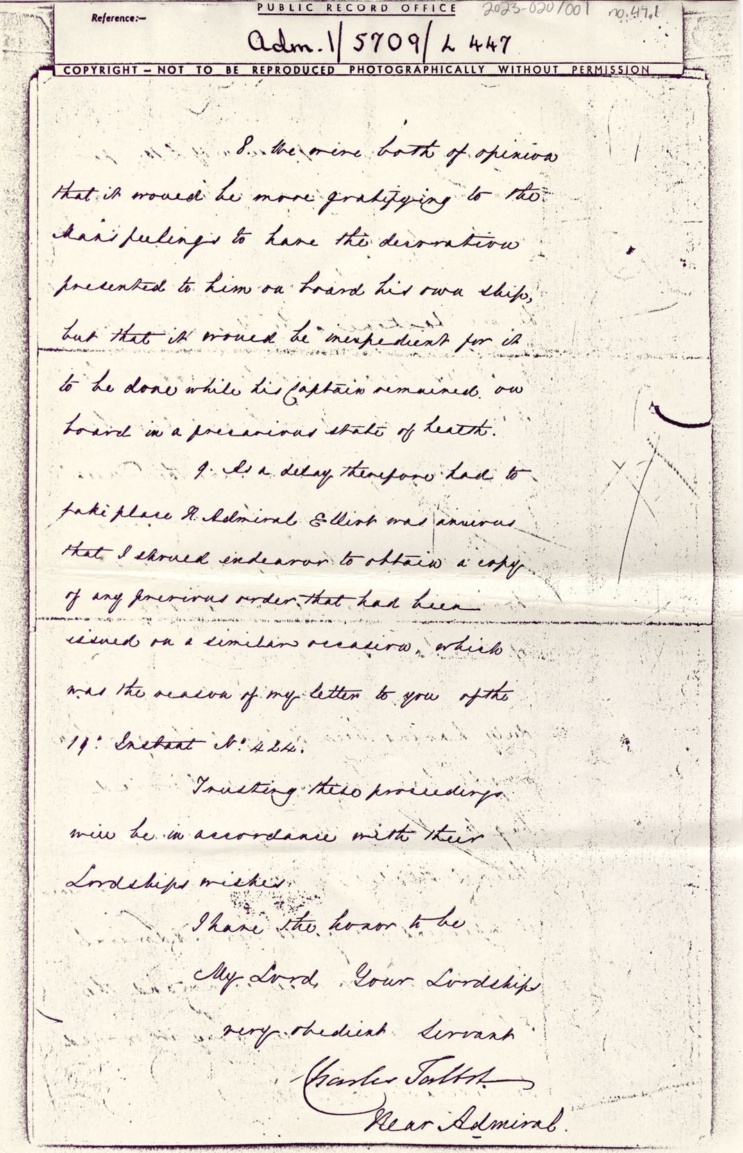 Photocopy of Public Record Office: ADM.1/5709 No. L447 dated 31 October 1859.