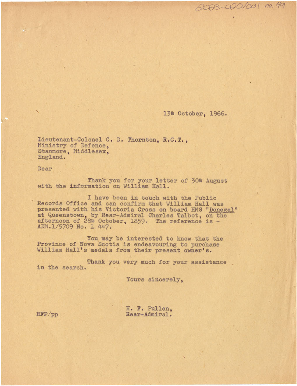 Reference Rear Admiral Hugh F. Pullen Nova Scotia Archives 2023-020/001-49