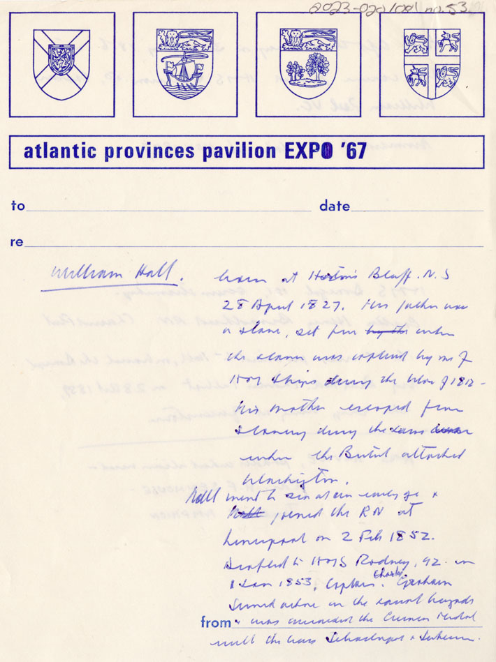 Based on the transcripts provided by Margaret Franklin, London. Also descriptive list of medals awarded to William Hall.
