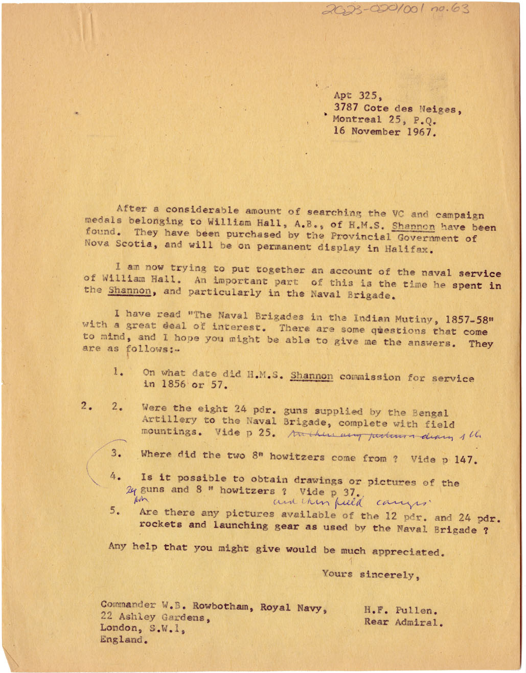 Reference Rear Admiral Hugh F. Pullen Nova Scotia Archives 2023-020/001-63