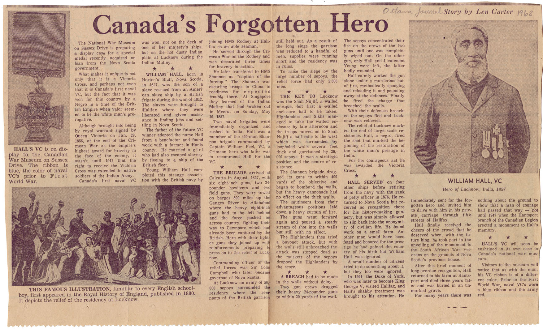 Ottawa Journal newspaper clipping regarding Hall by Len Carter