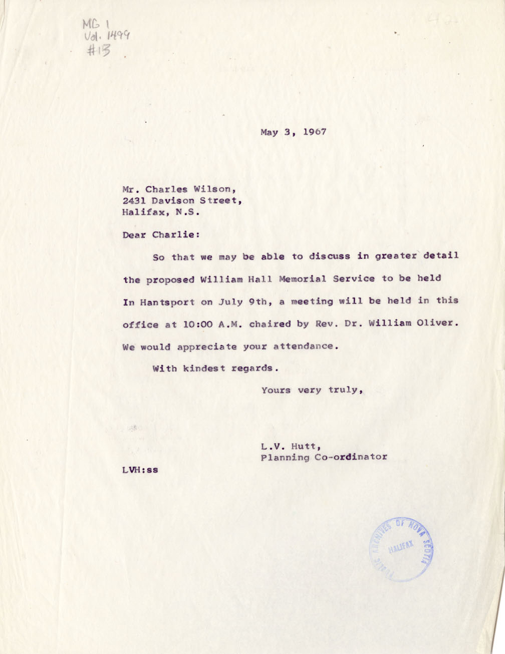 Reference William Hall, VC Nova Scotia Archives MG 1 volume 1499 number 13