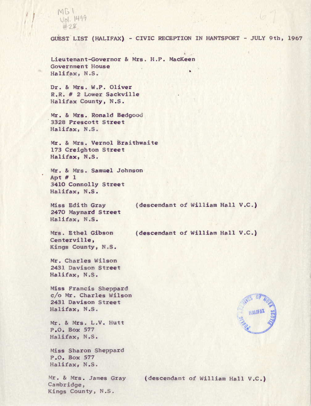 Reference William Hall, VC Nova Scotia Archives MG 1 volume 1499 number 28