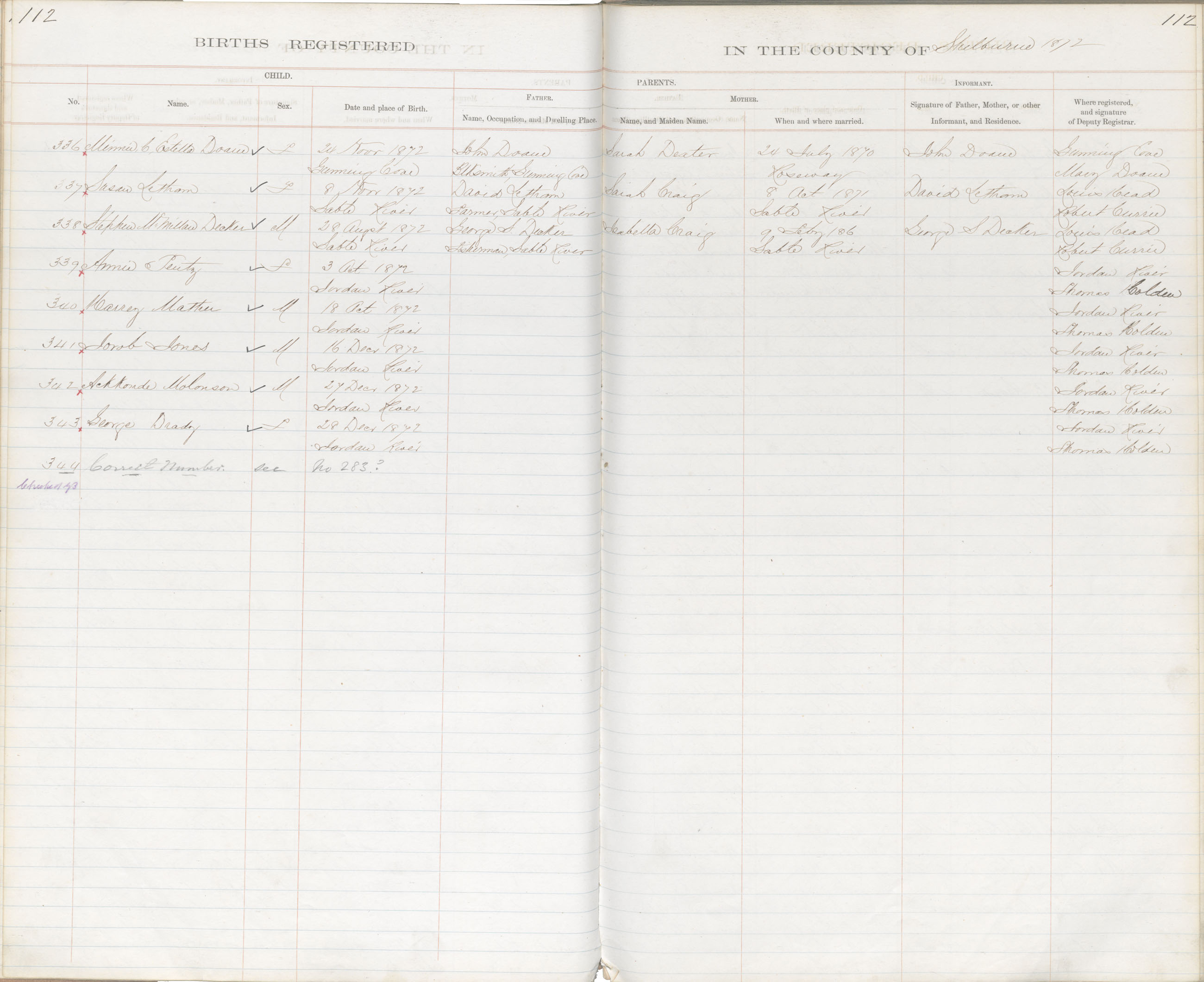 Birth Registration: Year: 1872 book: 1821 page: 112 number: 343