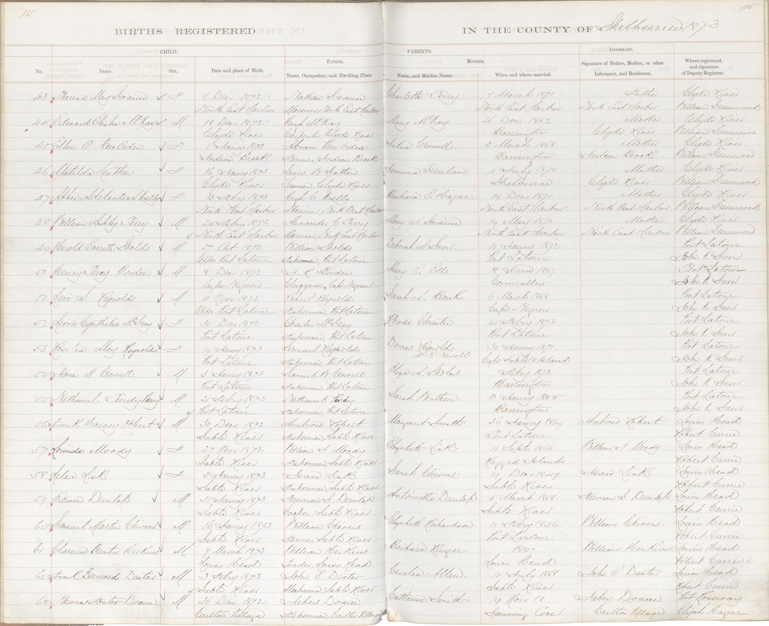 Birth Registration: Year: 1872 book: 1821 page: 115 number: 43