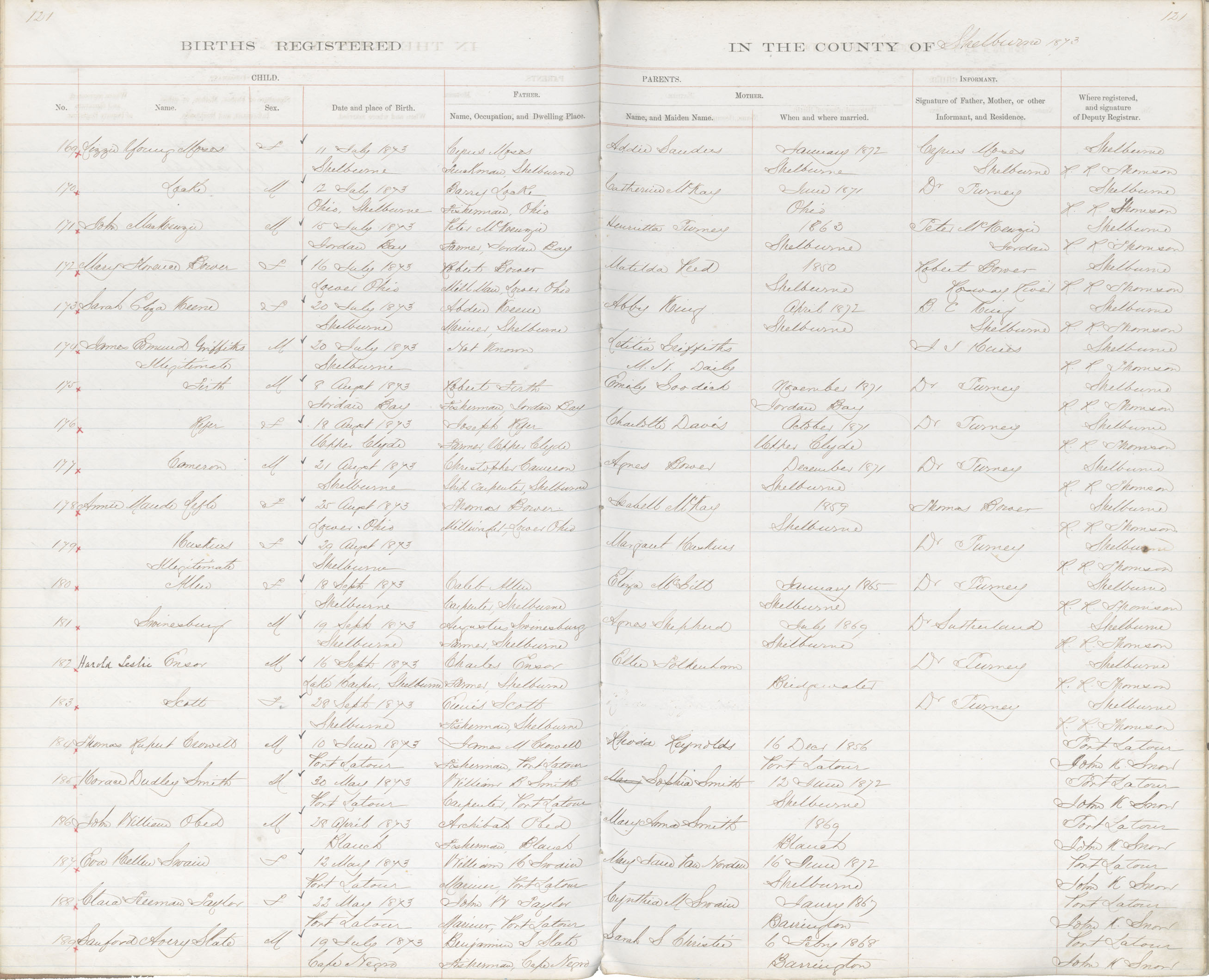 Birth Registration: Year: 1873 book: 1821 page: 121 number: 169
