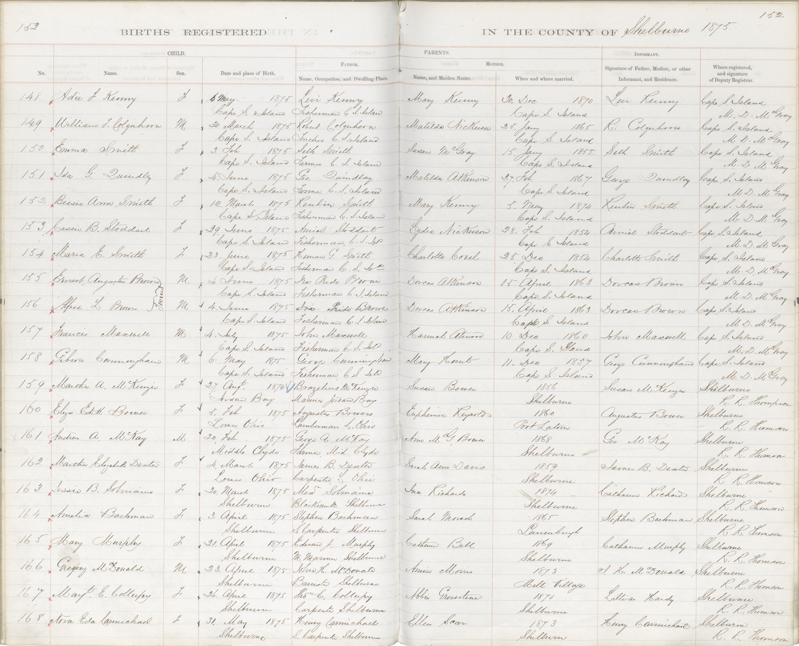 Birth Registration: Year: 1875 book: 1821 page: 152 number: 168