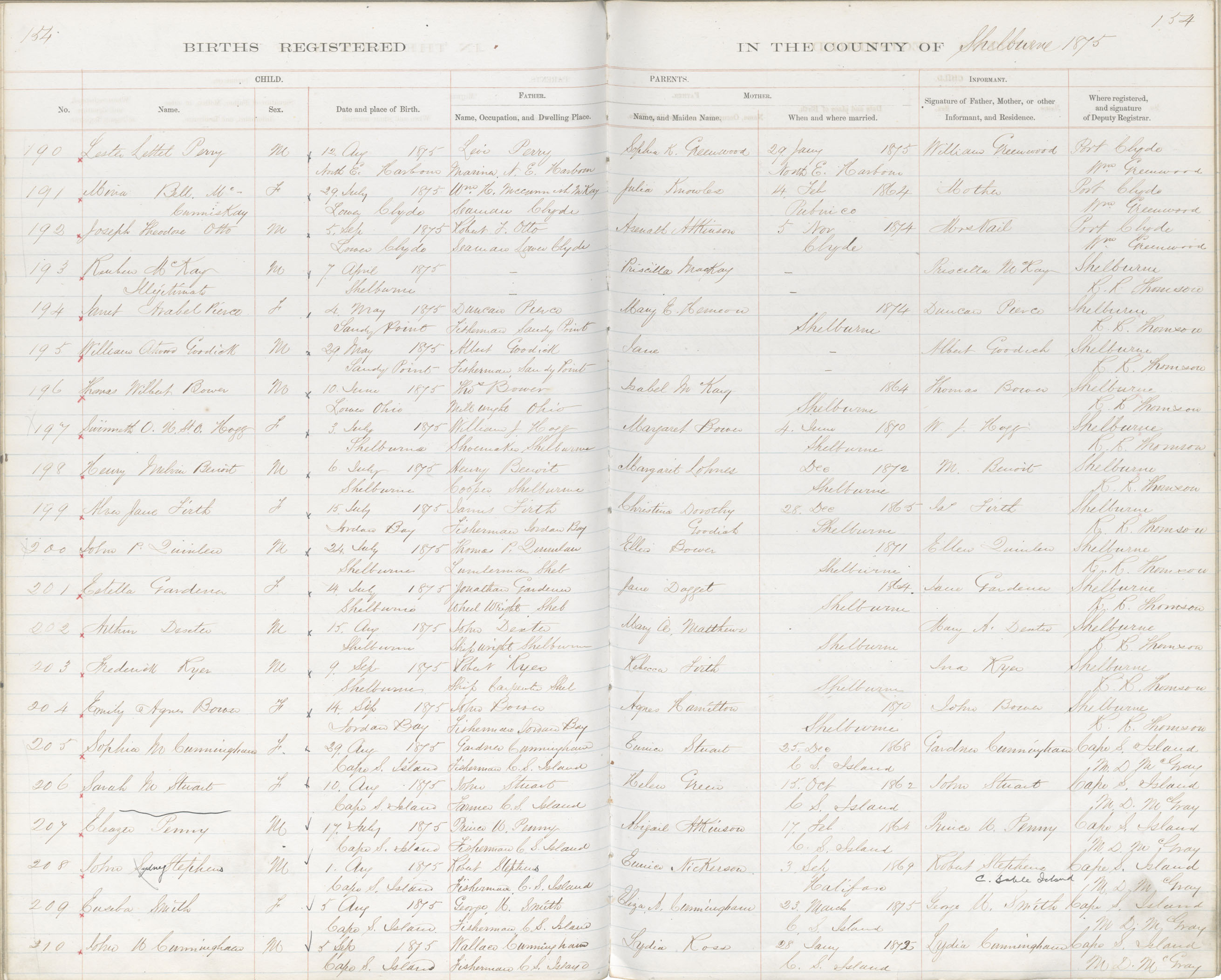 Birth Registration: Year: 1875 book: 1821 page: 154 number: 210