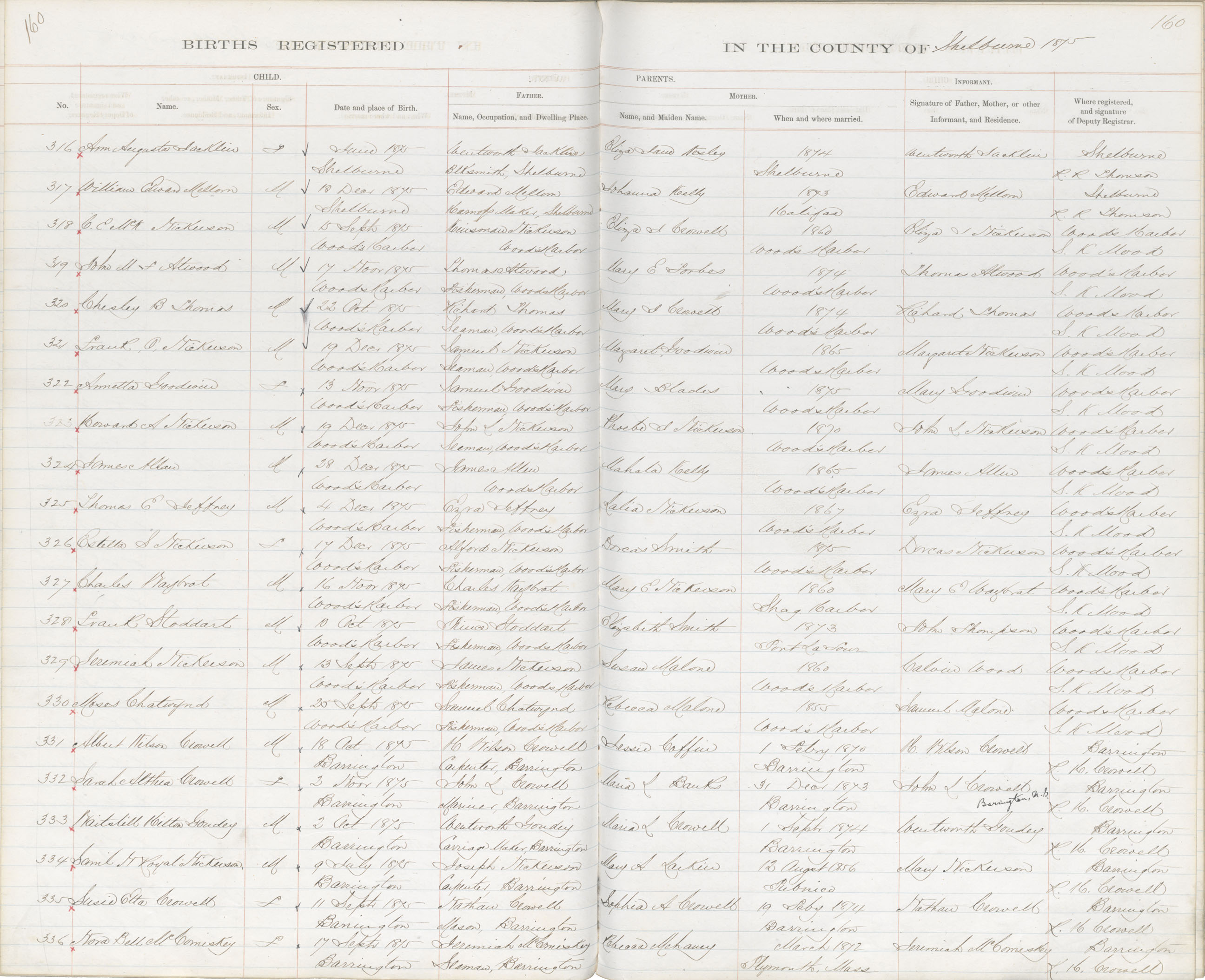 Birth Registration: Year: 1875 book: 1821 page: 160 number: 316