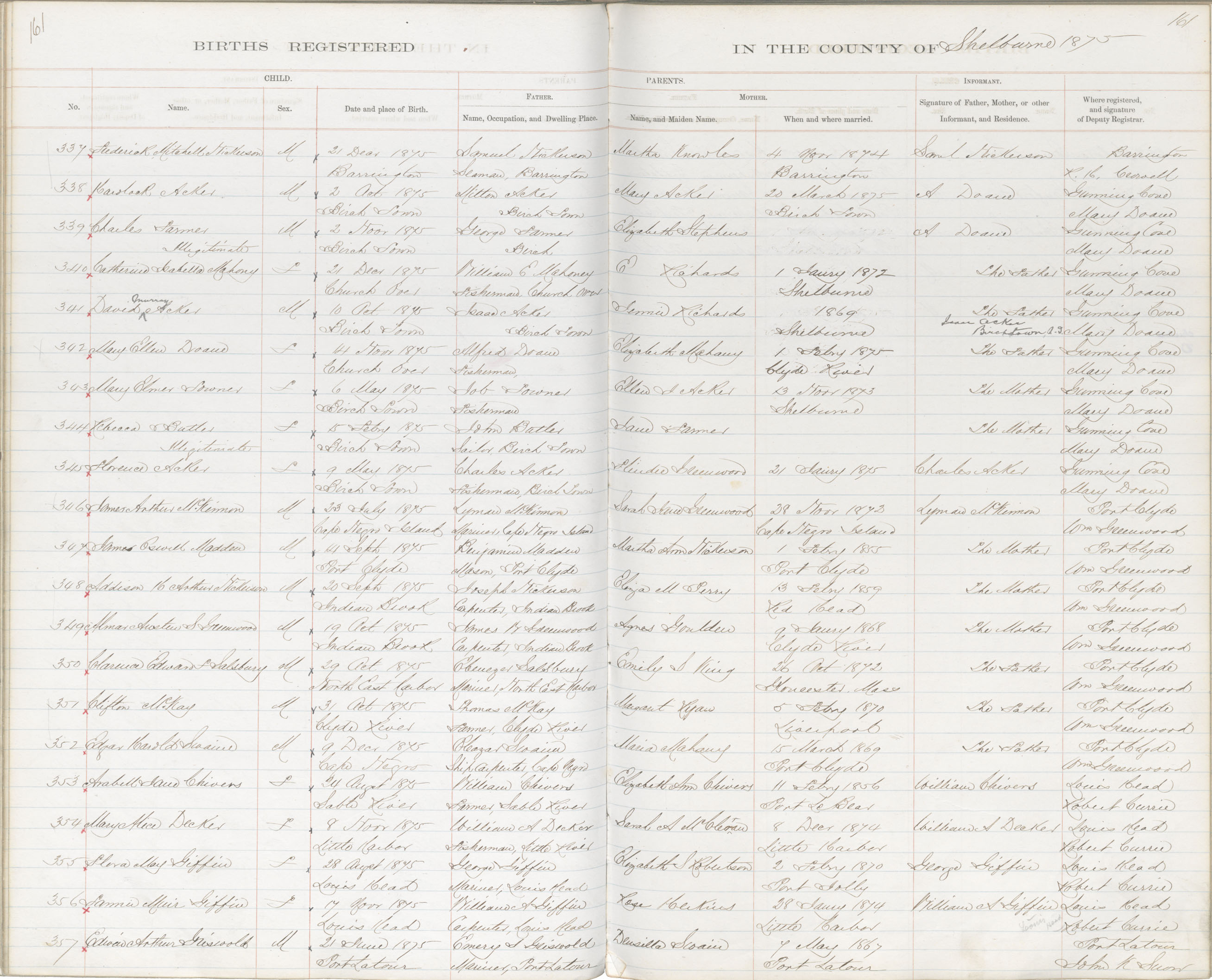 Birth Registration: Year: 1875 book: 1821 page: 161 number: 337