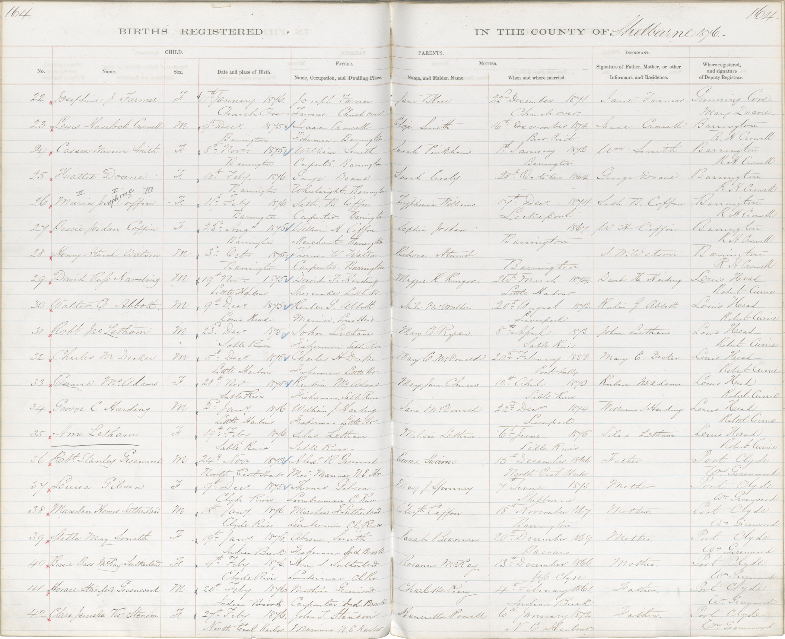 Birth Registration: Year: 1876 book: 1821 page: 164 number: 22