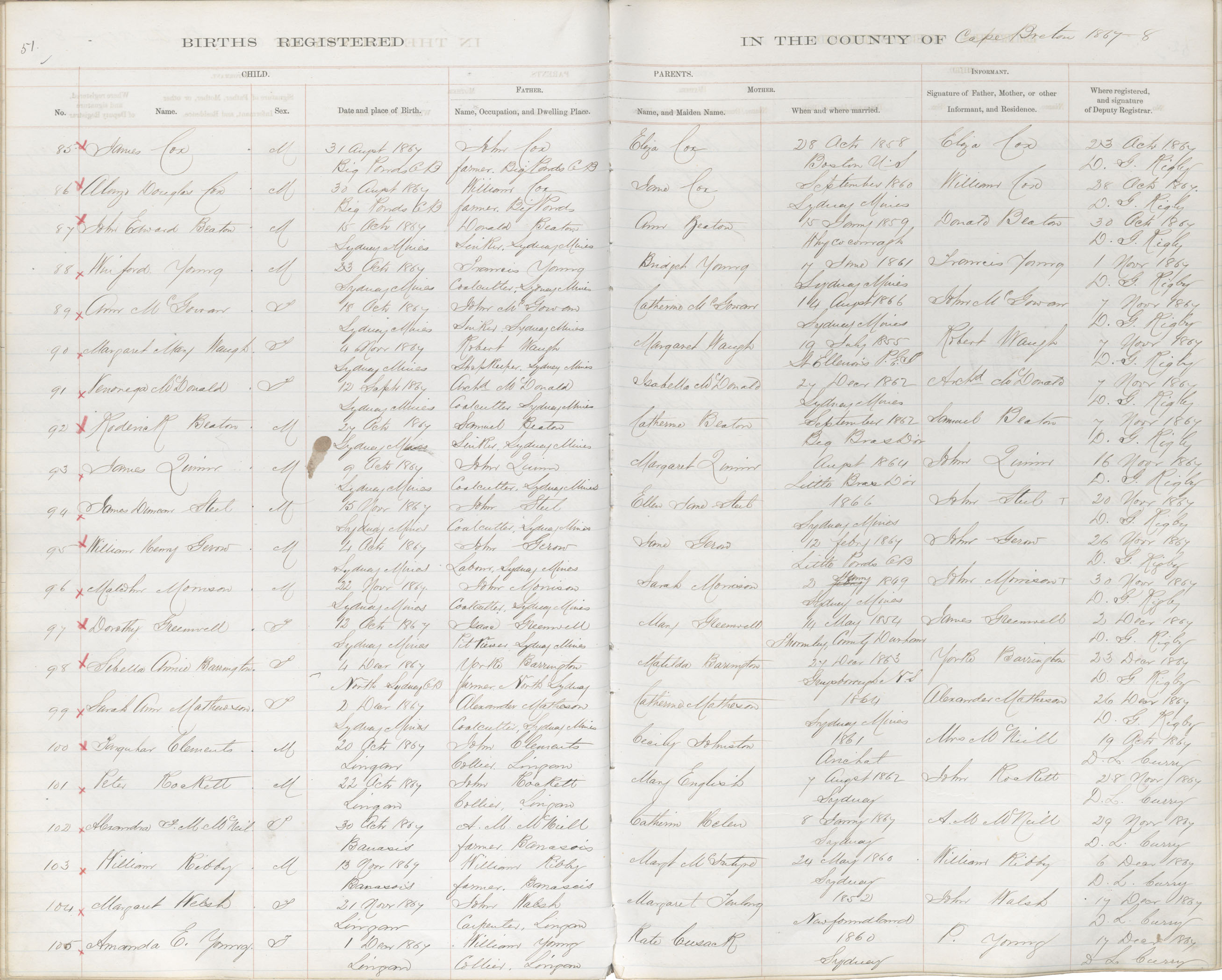 Female Birth Registration: Year: 1867 book: 1803 page: 51 number: 91