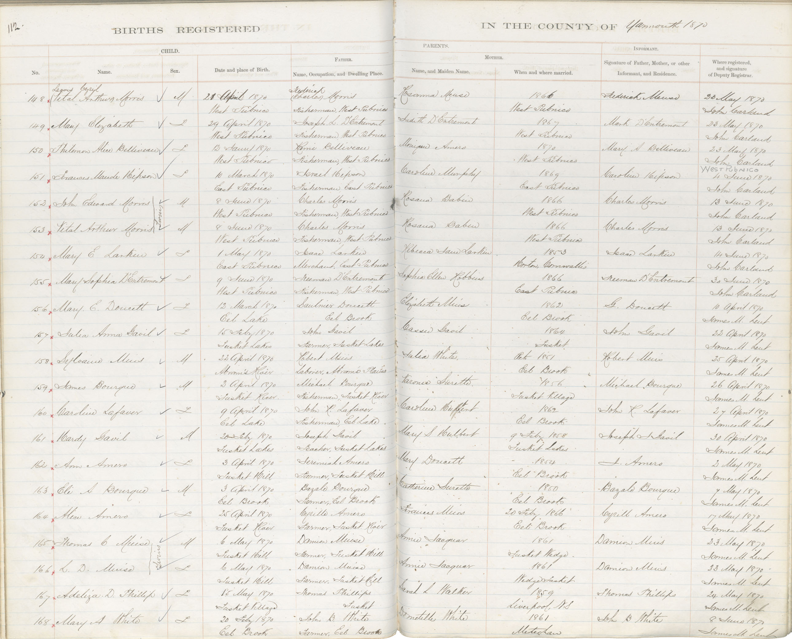 Birth Registration: Year: 1870 book: 1823 page: 112 number: 148