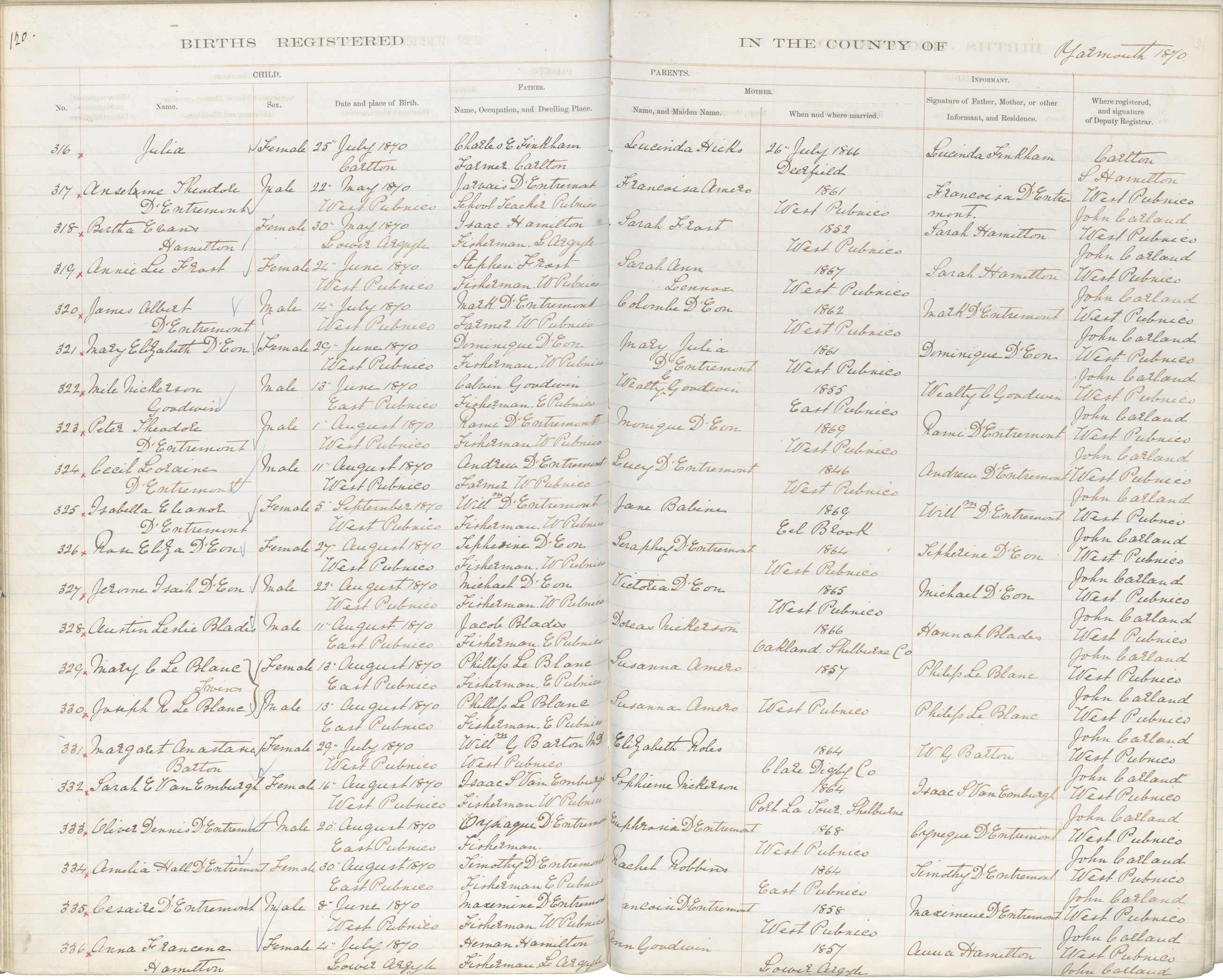 Birth Registration: Year: 1870 book: 1823 page: 120 number: 316