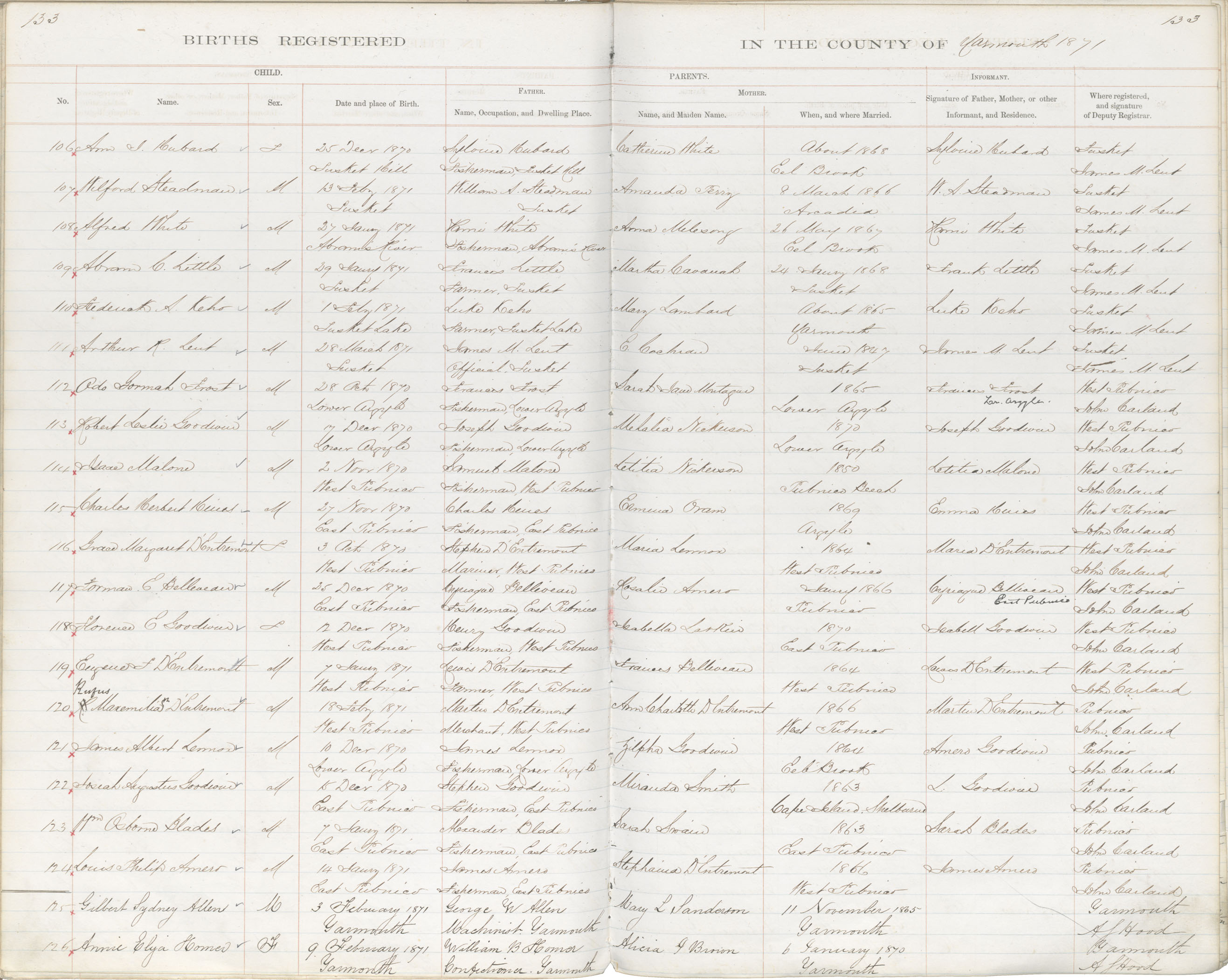 Birth Registration: Year: 1871 book: 1823 page: 133 number: 126