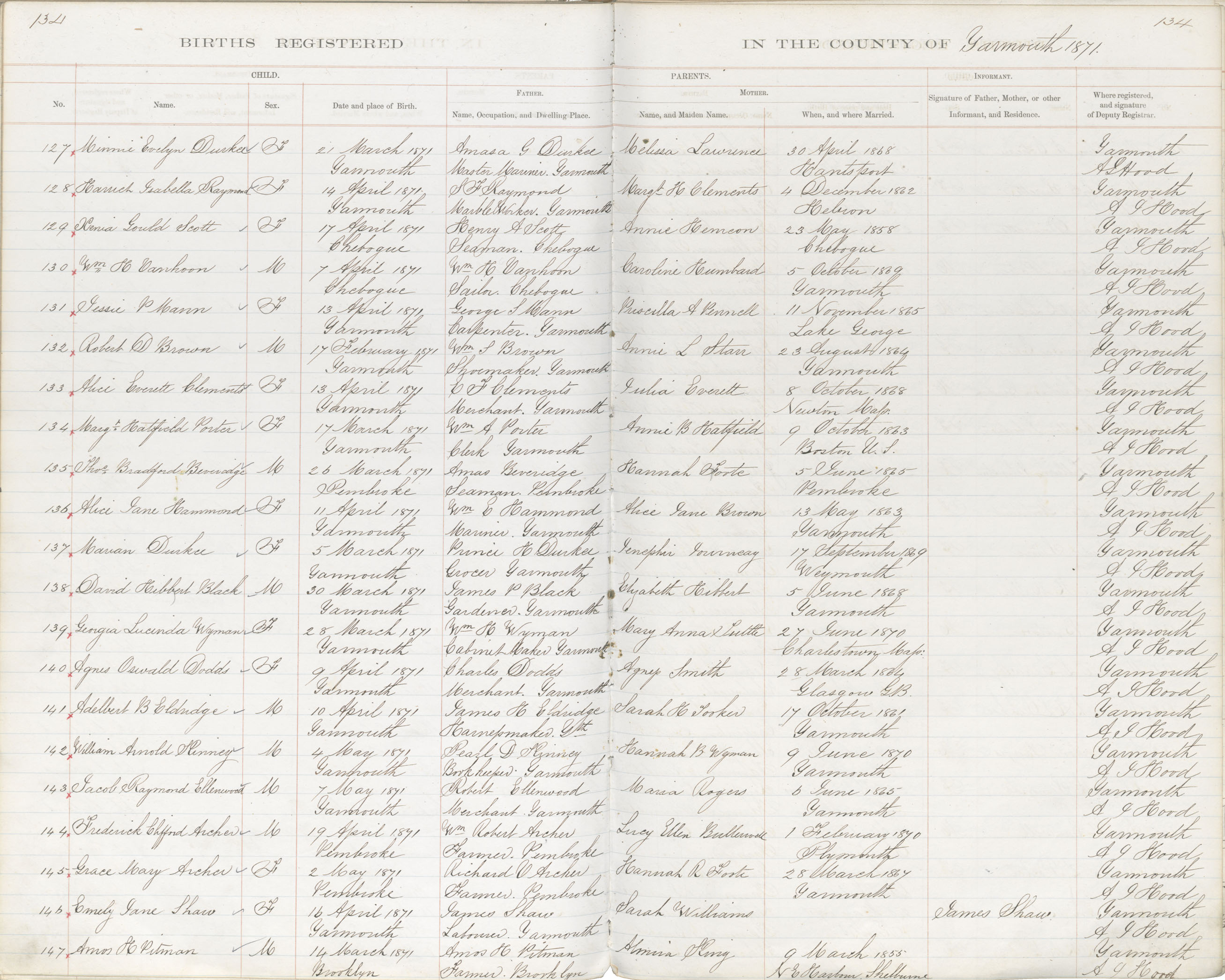 Birth Registration: Year: 1871 book: 1823 page: 134 number: 147