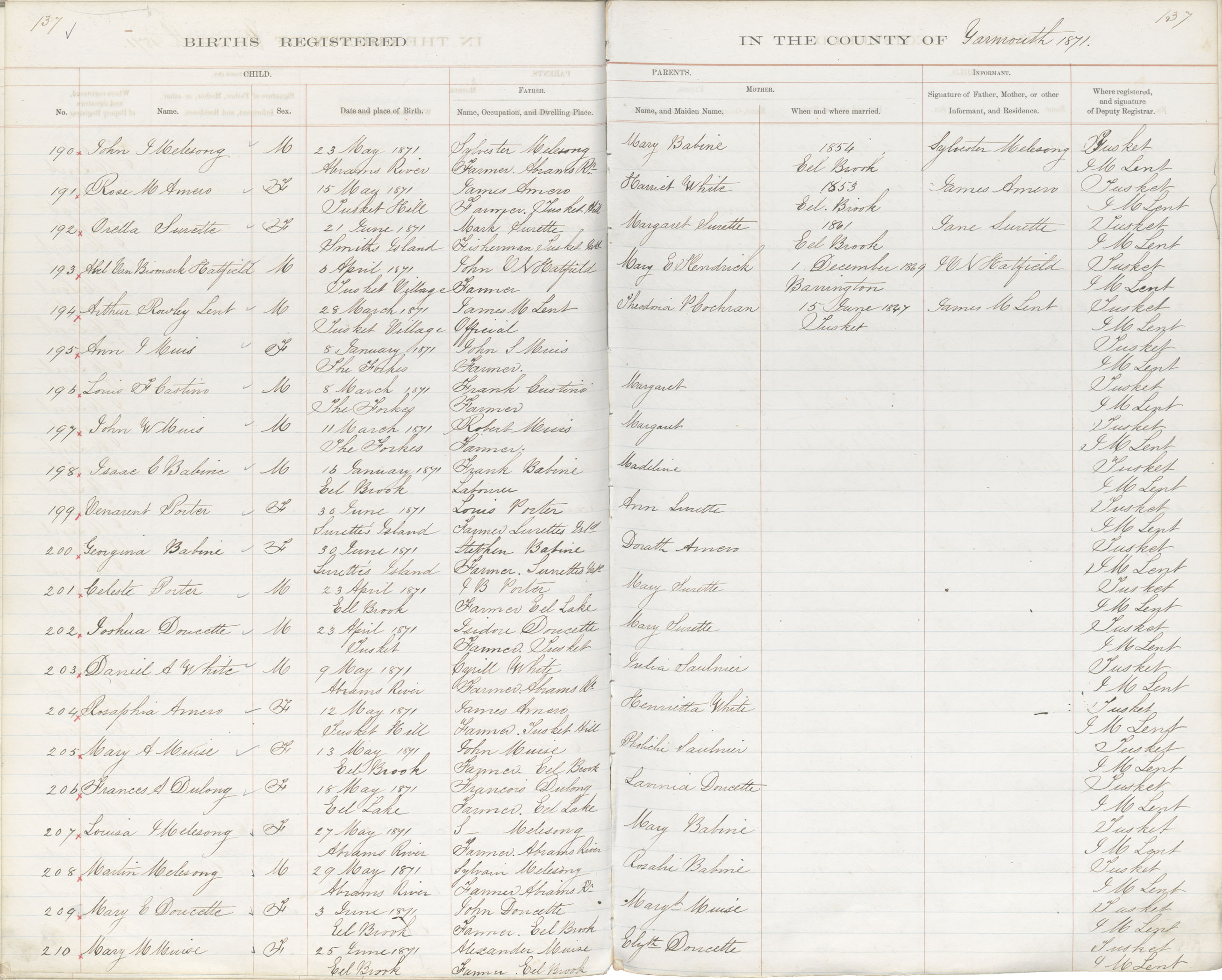 Birth Registration: Year: 1871 book: 1823 page: 137 number: 210