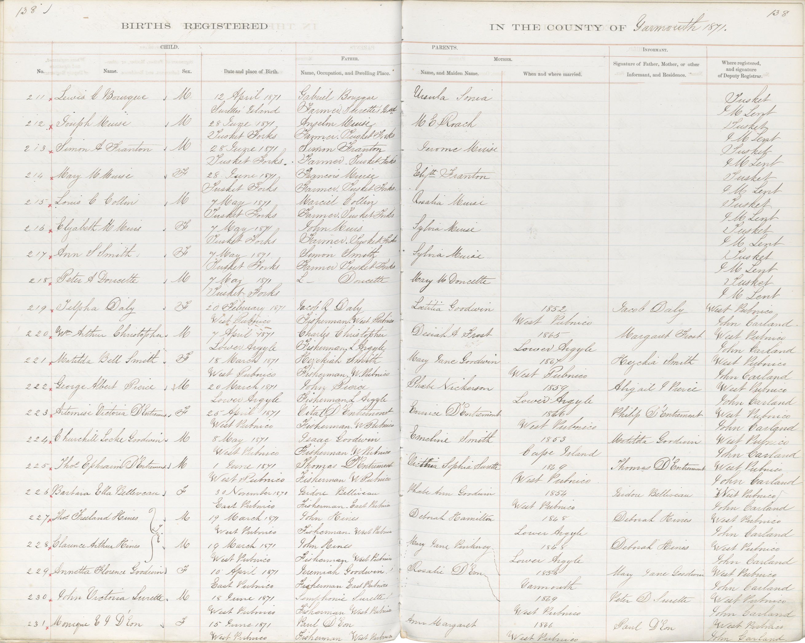 Birth Registration: Year: 1871 book: 1823 page: 138 number: 231