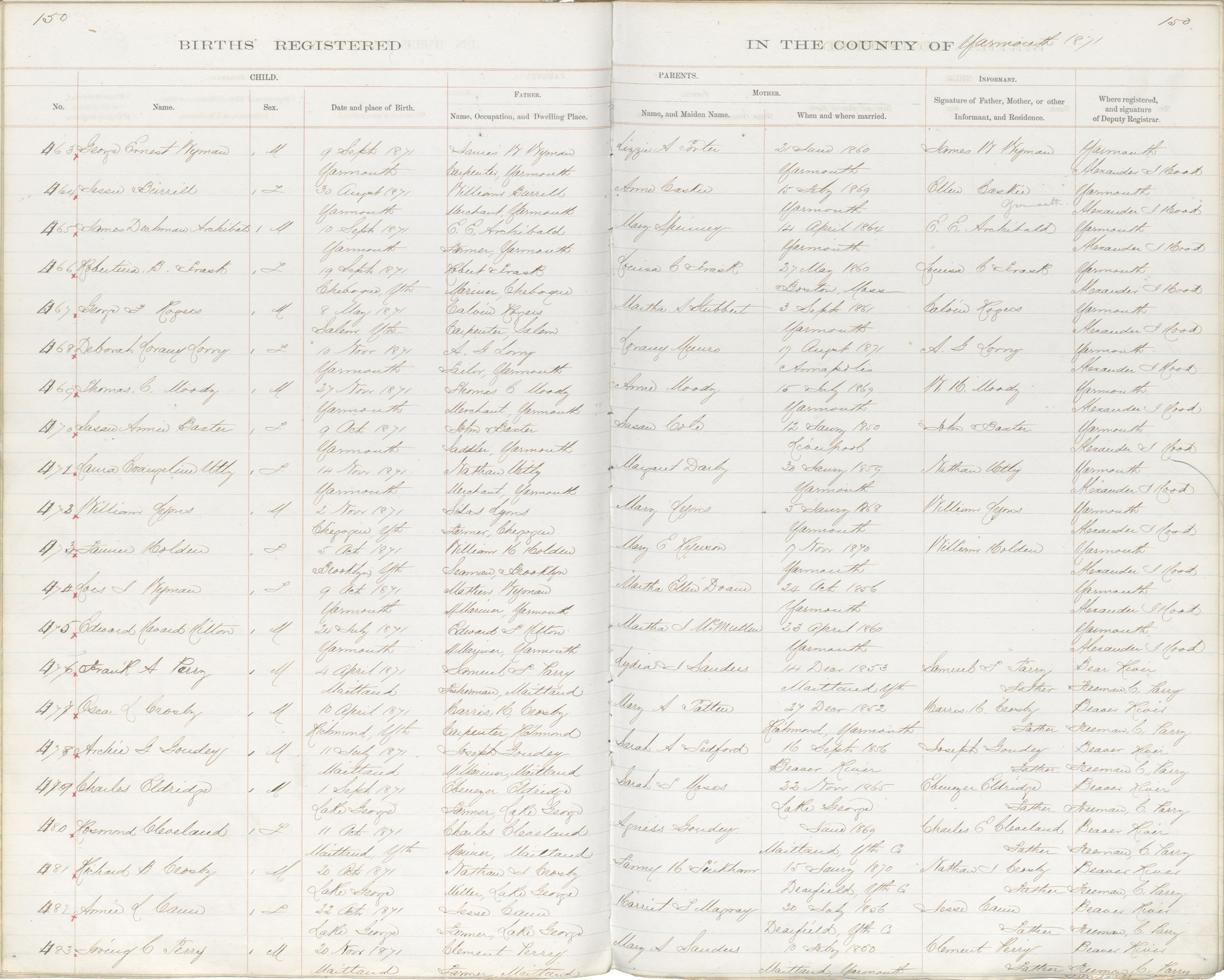 Birth Registration: Year: 1871 book: 1823 page: 150 number: 464